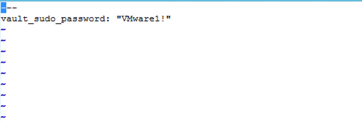 Our first step is to add the password we want to protect into the vault file by editing the vault using “ansible-vault edit NAME_OF_VAULT_FILE”. This opens the file with your systems default text editor after you have provided the vault password (once per session). In our scenario the default editor is “vi”.