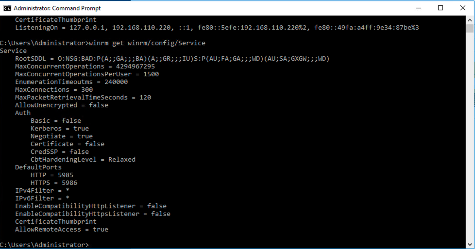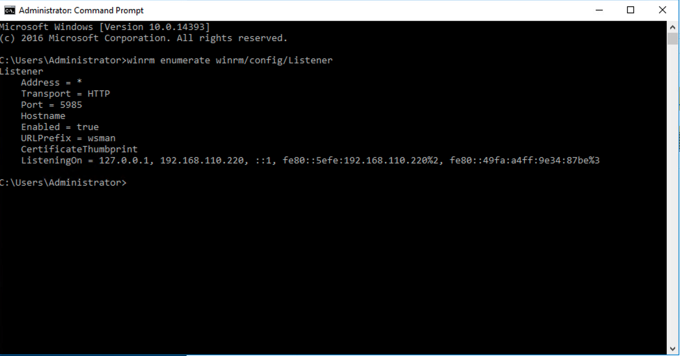Out of the box Windows 2016 comes with a single HTTP listener configured (i.e. the configuration that Windows using to listen for incoming connections).