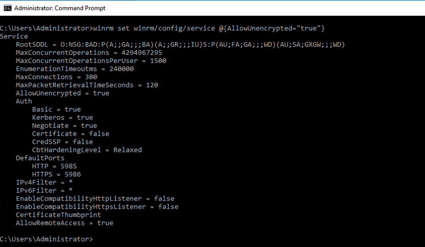 The Windows 2016 target machine I am using needs to have its WinRM configuration set, which dictates authentication mechanisms and other options/settings that incoming connections can use. For this first step with Windows I am concentrating on unencrypted basic authentication, a “walk before you run” implementation. Other methods (which are obviously more secure) are available and I will cover some of those in a later article. For now I am just proving the concept!
