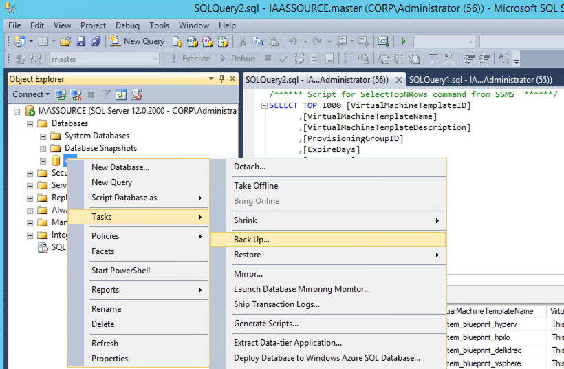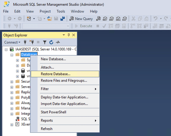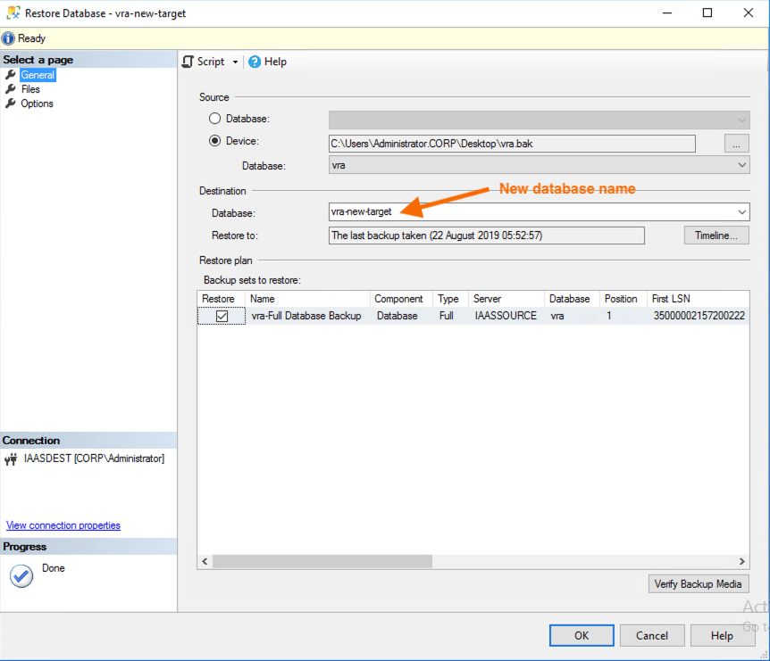 It doesn’t matter if you are sharing the same SQL platform for source and target vRA stacks as you should restore the database using a different name. This is so you can keep the original source database separate from the existing target database and new restored target database. By doing this you keep the source environment online and keep the original target database available should you need to retry the migration without having to restore that as part of the retry process.