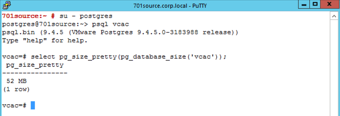 su - postgres -c "/opt/vmware/vpostgres/current/bin/vacuumdb -f -p 5432 -t pg_largeobject -t pg_largeobject_metadata vcac"