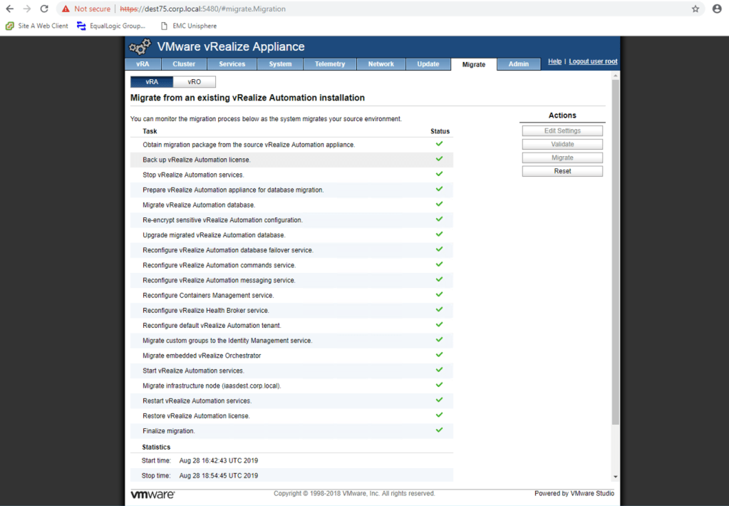 I’m not going to insult your intelligence by showing you how to install vRA. All I will say is check the 7.x documentation to see what versions you can use the migration tool with (e.g. to get to 7.6 from 7.0x you need to migrate to 7.5 first and then do an in-place upgrade to 7.6) and make sure your root passwords are the same across all target appliances if using a HA architecture.