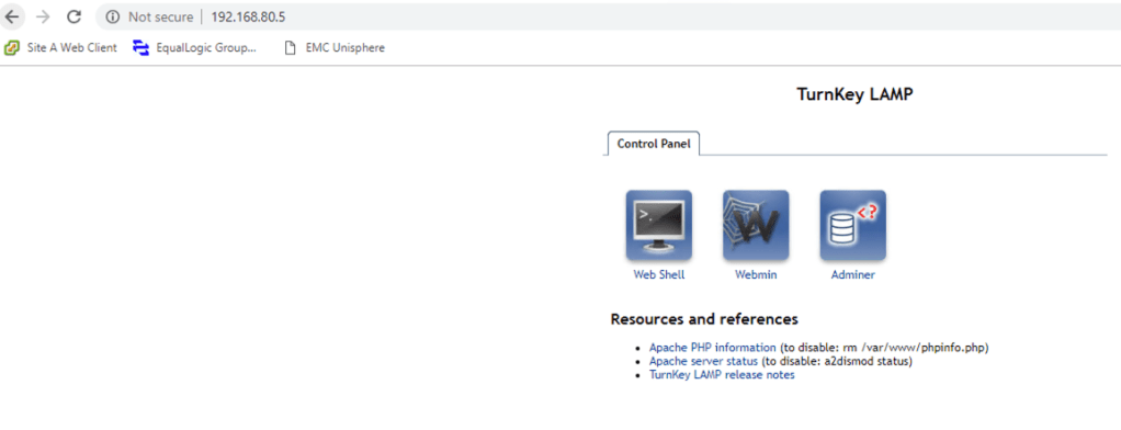 Hitting the virtual server IP address results in a successful connection to a pool member. In this case my pool members are just based on turnkey LAMP images (un-configured).