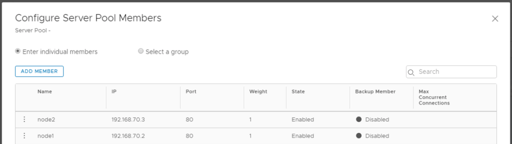 Finally the Virtual Server is added and linked to the Load Balancer and Server Pool from the previous steps. The IP address used for the Virtual Server can be anything that does not clash with existing address/subnets advertised within the environment. Here I have used “192.168.10.200” which does not clash within anything else.