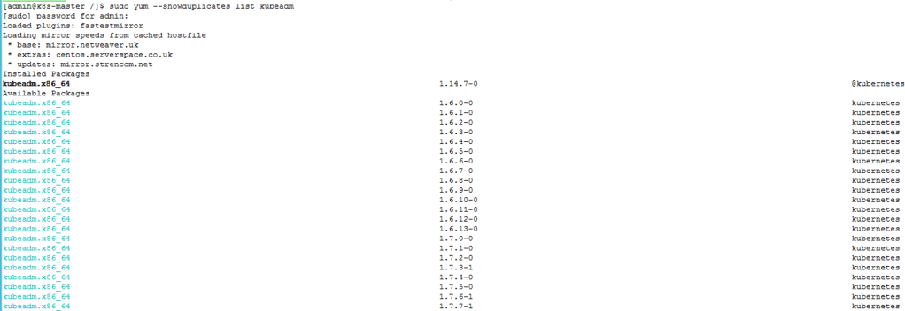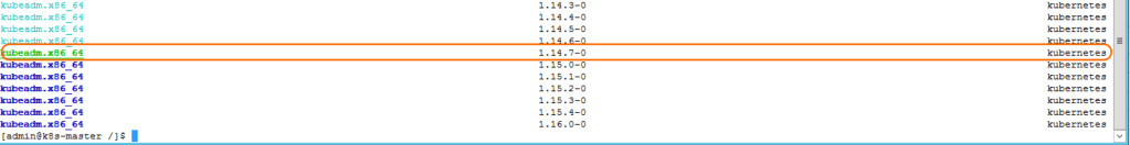 The latest version of kubeadm 1.14 is listed as version 1.14.7-0 so this is the one I am using for my Kubernetes deployment on all 3 hosts.