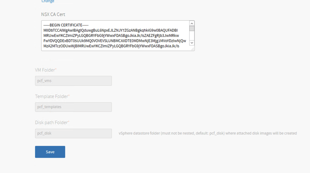 Once I had done this I placed my root CA cert into the “NSX CA Cert” box provided in the BOSH tile as shown below.