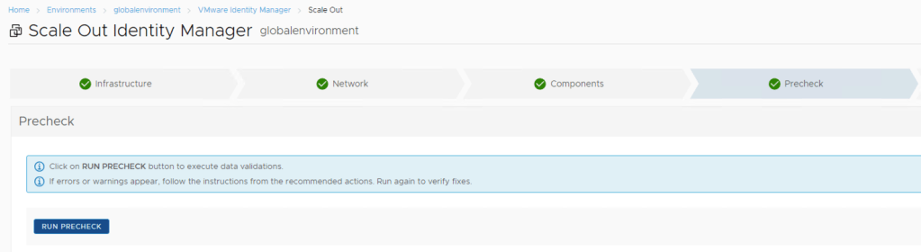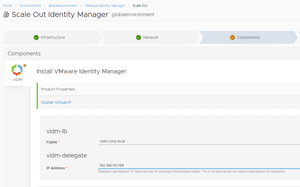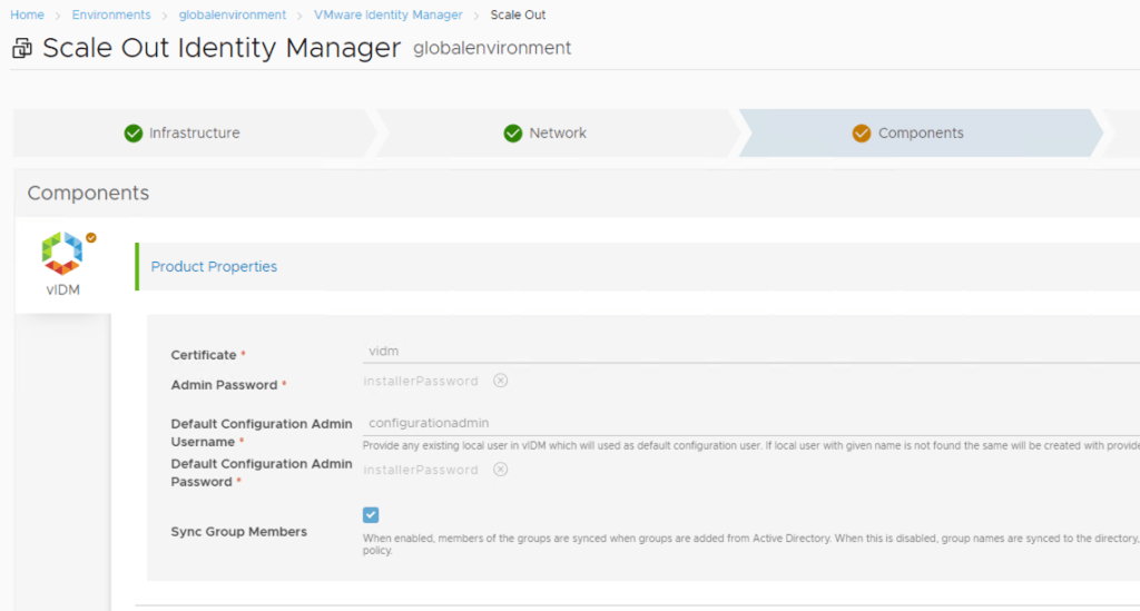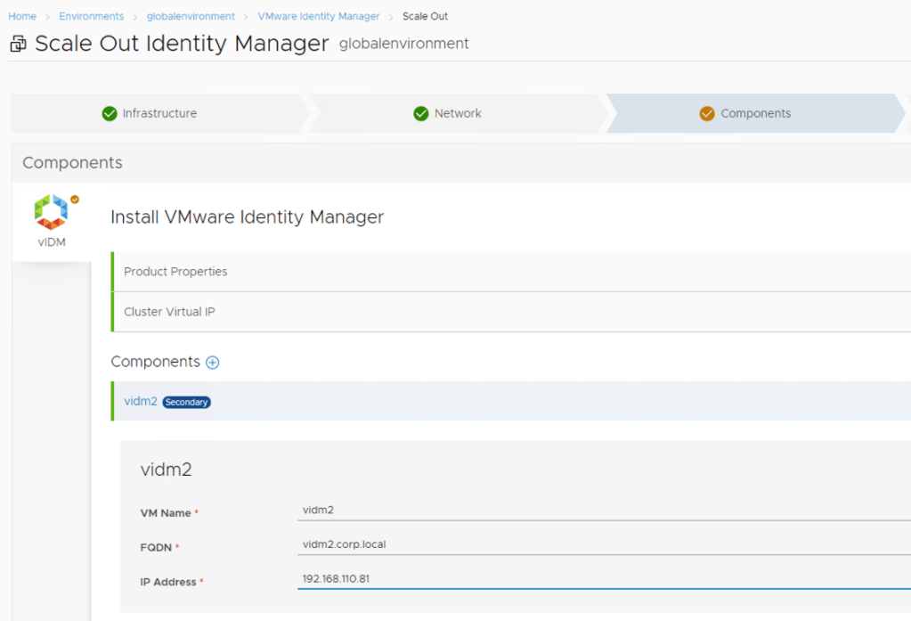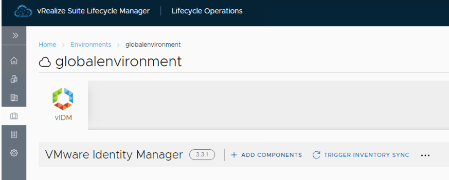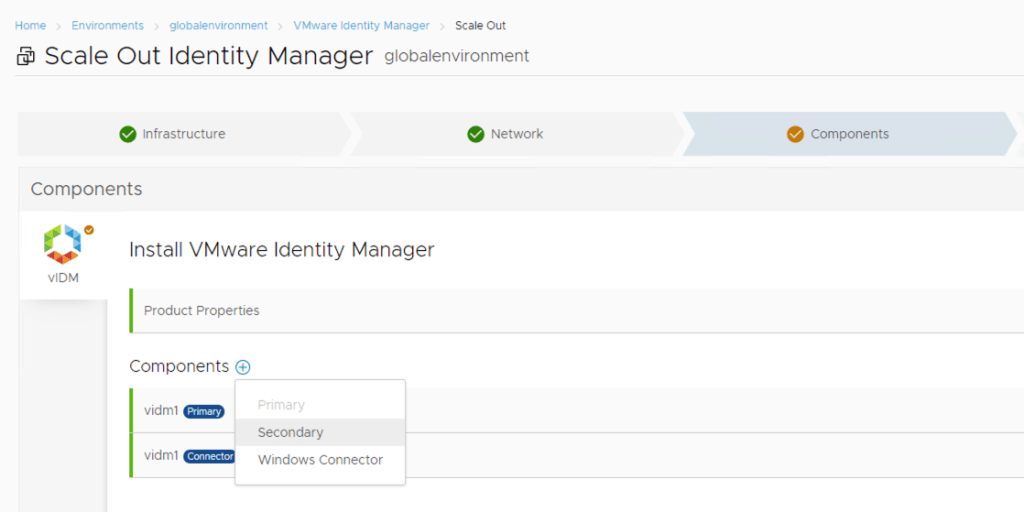 Scaling out vIDM is basically adding more components so the “Add Components” option is used from with the “globalenvironment” environment.