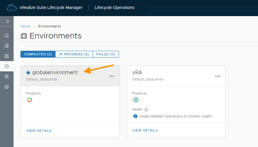 That vIDM instance being scaled will be contained within a vRSLCM environment called “globalenvironment” as shown below. This environment is created automatically by the Easy Installer process when vRSLCM is first deployed.
