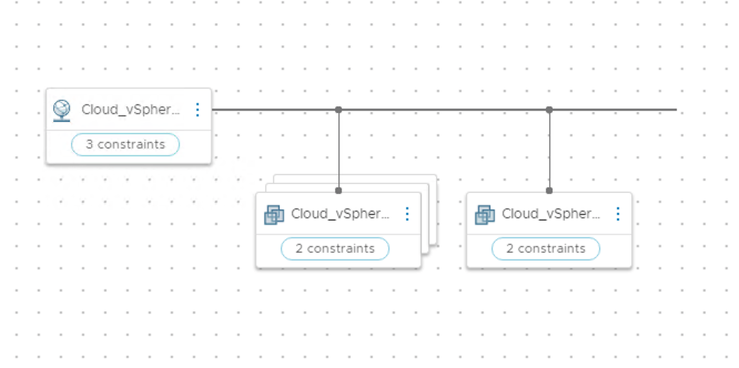 Here is a screenshot of an example blueprint I will use to illustrate things. It contains one existing vSphere network with 2 types of vSphere machines attached. The first type can have a quantity of one or more, the second type is fixed at a single VM.