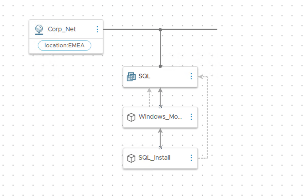 Once the Custom Resource is activated it can be dropped onto a Cloud Template just like any other component or integration that needs to be used. The Cloud Template below represents a single component VM that is using the Custom Resource to run scripts for configuring Windows OS modules and for installing SQL 2016.