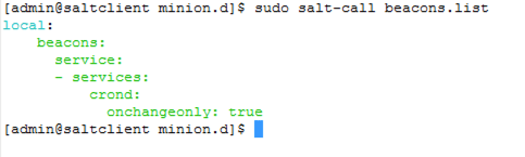 Once the State has been applied you can verify the Minion configuration for Beacons by jumping onto the console for the Target and issuing a command to list all the defined Beacons.